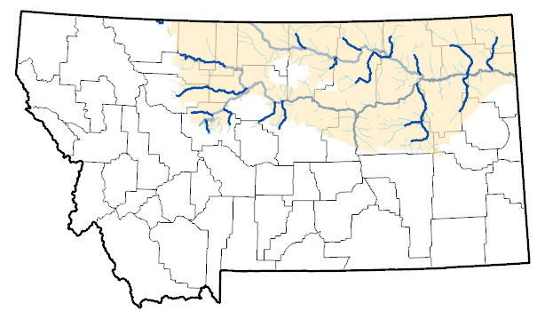 The Medium Prairie River type occurs throughout the Great Plains region of North America within the Missouri River Drainages. In the Montana Glaciated Plains Ecoregion (AES B006), examples include Redwater River, Frenchman, Rock, Battle, Lodge, Poplar, Wolf, Big Muddy and Beaver Creeks. In the Northwestern Great Plains (AES B005), examples include the lower reaches of the Little Powder, O’ Fallon, Mizpah, Pumpkin, Rosebud, Little Beaver, and Beaver Creeks.
