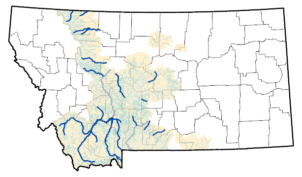 The Intermountain Transitional River Ecosystem has been identified in the rivers that dominate the trout fishing scene throughout central and southwest Montana; B001-Medium Intermontane rivers, origins in Intermontane basins within the Southwest Montana Basin and Valley including the Big Hole, Beaverhead, Madison, Jefferson, Red Rock Rivers. Additional Intermountain Transitional Rivers include the Smith, Gallatin, Dearborn, Sun and the mainstem Missouri from Three Forks to Cascade. In the Yellowstone drainage, the mainstem Yellowstone River from Gardiner to Big Timber, Clarks Fork of the Yellowstone, the lower Boulder, Stillwater, and Shields Rivers. The Middle Missouri/Musselshell Drainages contain the representatives: Judith and Musselshell Rivers.