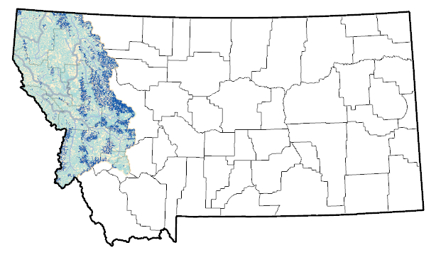 Species associations with vegetation communities should be used to generate potential lists of species that may occupy broader landscapes for the purposes of landscape-level planning. These potential lists of species should not be used in place of documented occurrences of species or predicted habitat suitability models (this information can be requested at: https://mtnhp.mt.gov/requests/), or systematic surveys for species and onsite evaluations of habitat by trained biologists. Users of this information should be aware that the land cover data used to generate species associations is based on satellite imagery from 2016 and was only intended to be used at broader landscape scales. Land cover mapping accuracy is particularly problematic when the vegetation communities occur as small patches or where the land cover types have been altered over the past decade. Thus, particular caution should be used when using the associations in assessments of smaller areas (e.g., evaluations of public land survey sections). Finally, although a species may be associated with a particular vegetation community within its known geographic range, portions of that vegetation community may occur outside of the species' known geographic range.