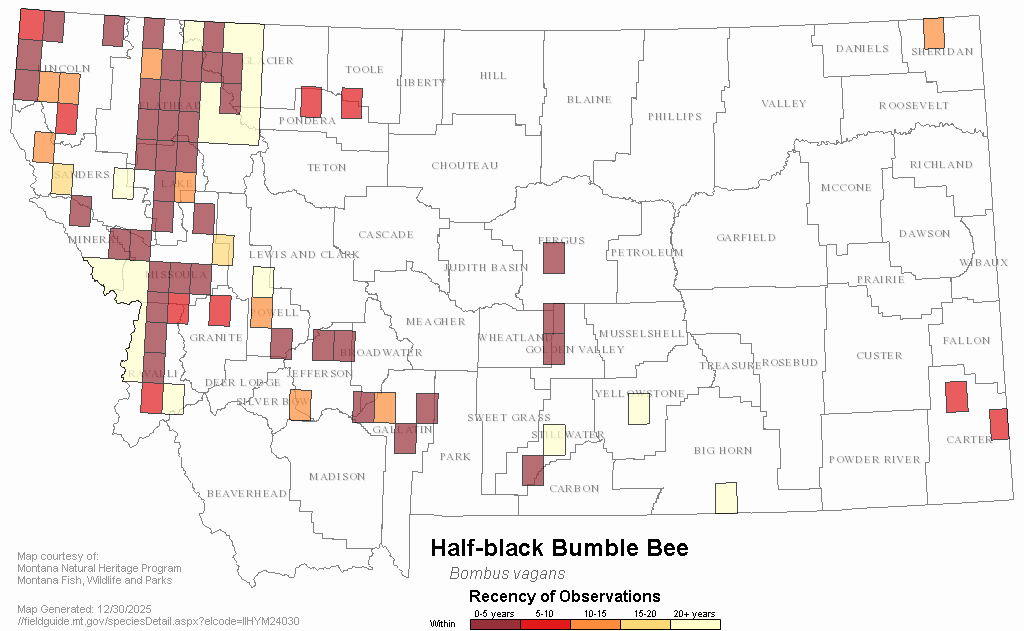 Dolan, A.C., C.M. Delphia, K.M. O'Neill, and M.A. Ivie. 2017. Bumble Bees (Hymenoptera: Apidae) of Montana. Annals of the Entomological Society of America. 110(2): 129-144.