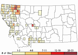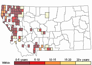 Species is widely distributed across montane areas of western and central Montana and relatively common within suitable habitat. Trend is unknown and the species does not appear to face significant threats.