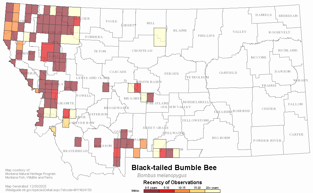 Dolan, A.C., C.M. Delphia, K.M. O'Neill, and M.A. Ivie. 2017. Bumble Bees (Hymenoptera: Apidae) of Montana. Annals of the Entomological Society of America. 110(2): 129-144.
