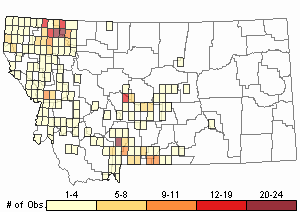 Species is widely distributed across areas of western and central Montana and relatively common within suitable habitat. Trend is unknown and the species does not appear to face significant threats.