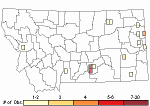 Species is distributed across areas of eastern Montana. Trend is unknown and the species does not appear to face significant threats.