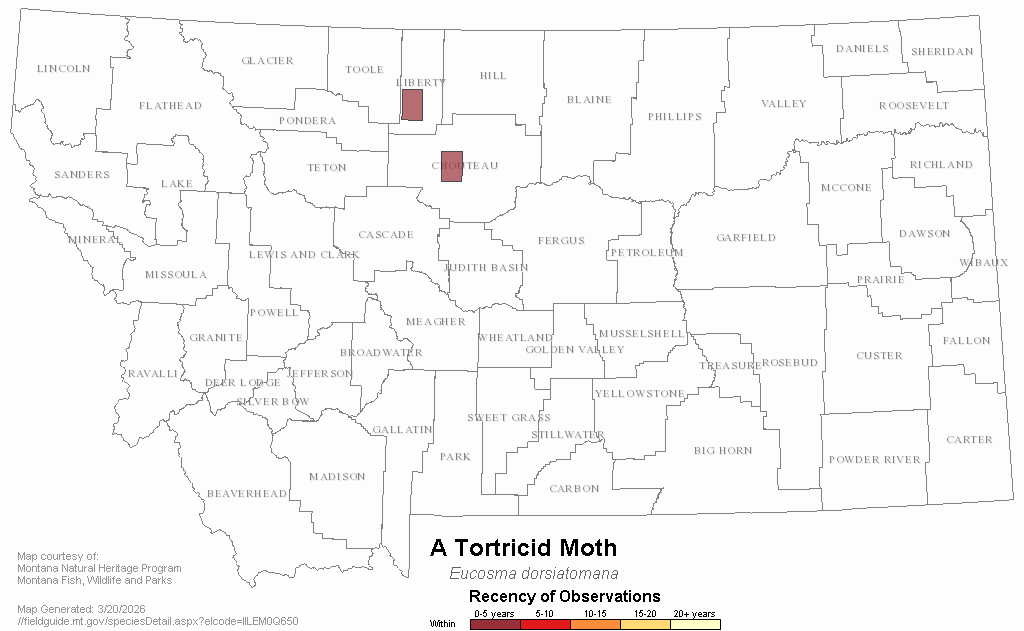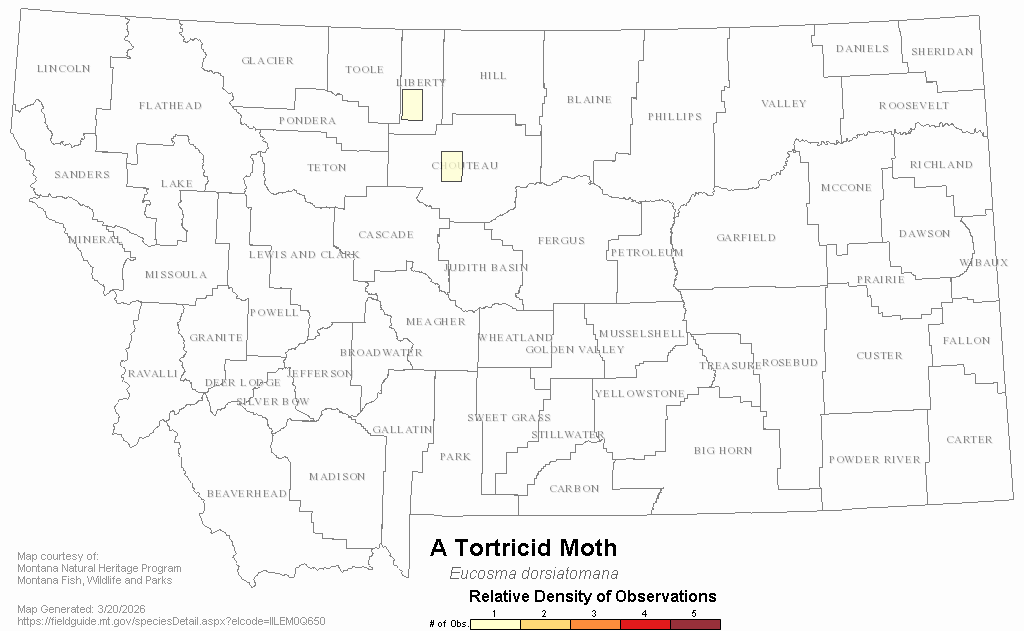 A Tortricid Moth — Eucosma dorsiatomana.  Montana Field Guide.  .  Retrieved on , from