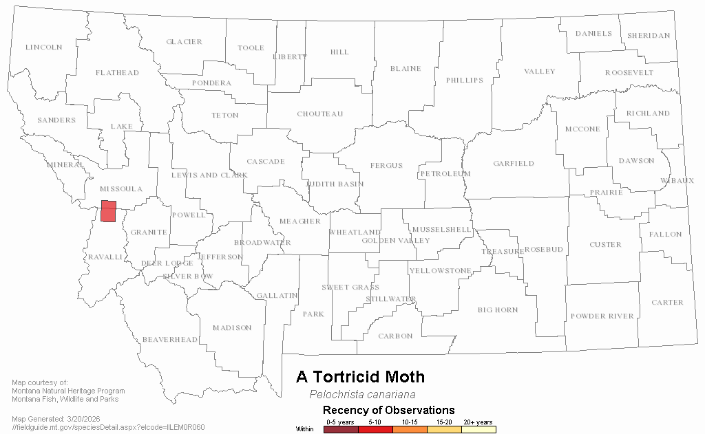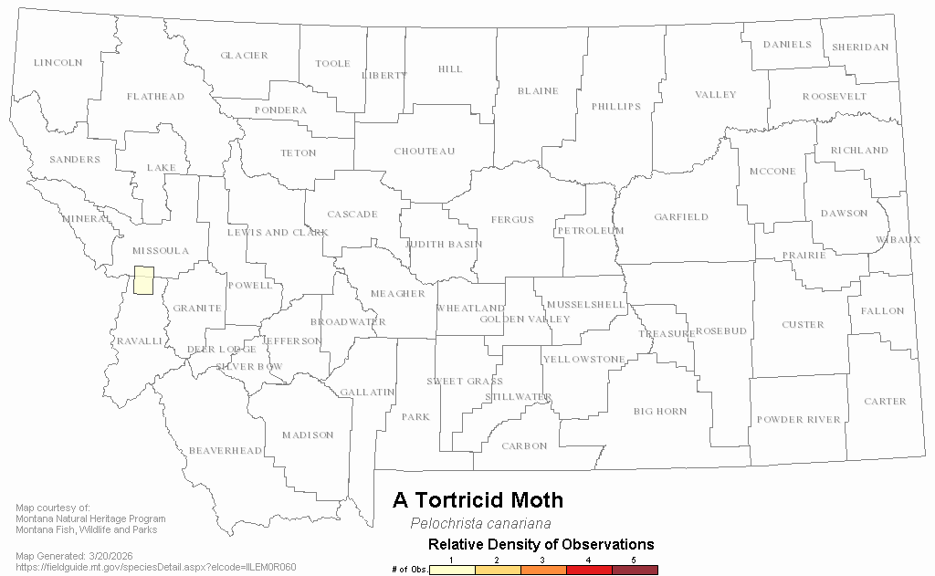 A Tortricid Moth — Pelochrista canariana.  Montana Field Guide.  .  Retrieved on , from