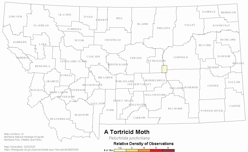 A Tortricid Moth — Pelochrista juncticiliana.  Montana Field Guide.  .  Retrieved on , from