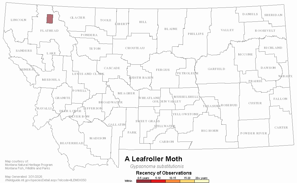 A Leafroller Moth — Gypsonoma substitutionis.  Montana Field Guide.  .  Retrieved on , from