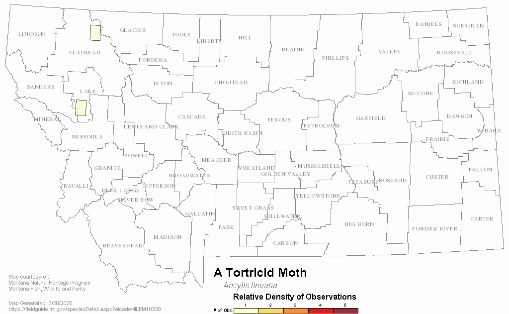 A Tortricid Moth — Ancylis tineana.  Montana Field Guide.  .  Retrieved on , from