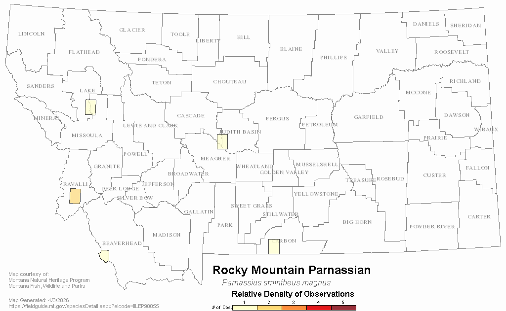 Rocky Mountain Parnassian — Parnassius smintheus magnus.  Montana Field Guide.  .  Retrieved on , from