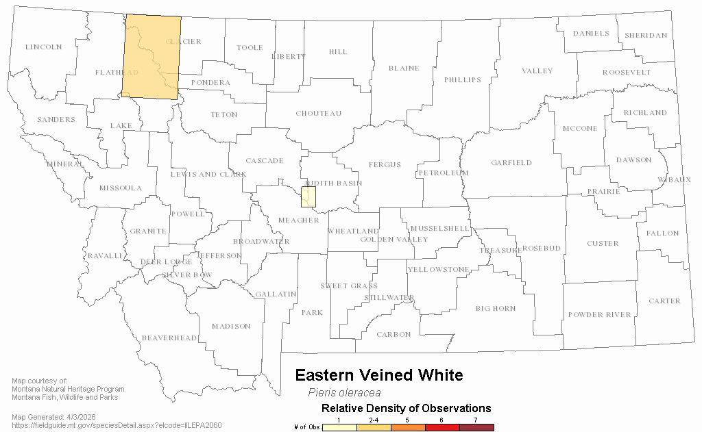 Eastern Veined White — Pieris oleracea.  Montana Field Guide.  .  Retrieved on , from