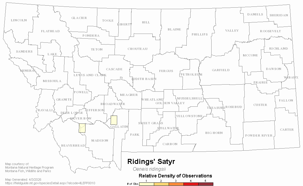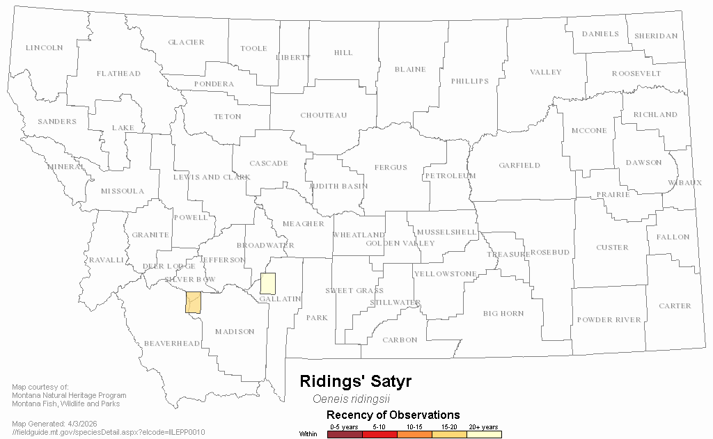 N. wyomingo) is now considered a subspecies of Riding's Satyr. See Scott et al. 2008 for a description of this subspecies.