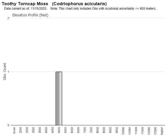 Elliot, J. C. 1993. Second checklist of Montana mosses. Unpublished report. U.S. Forest Service, Region 1. Missoula, MT. 45 pp.