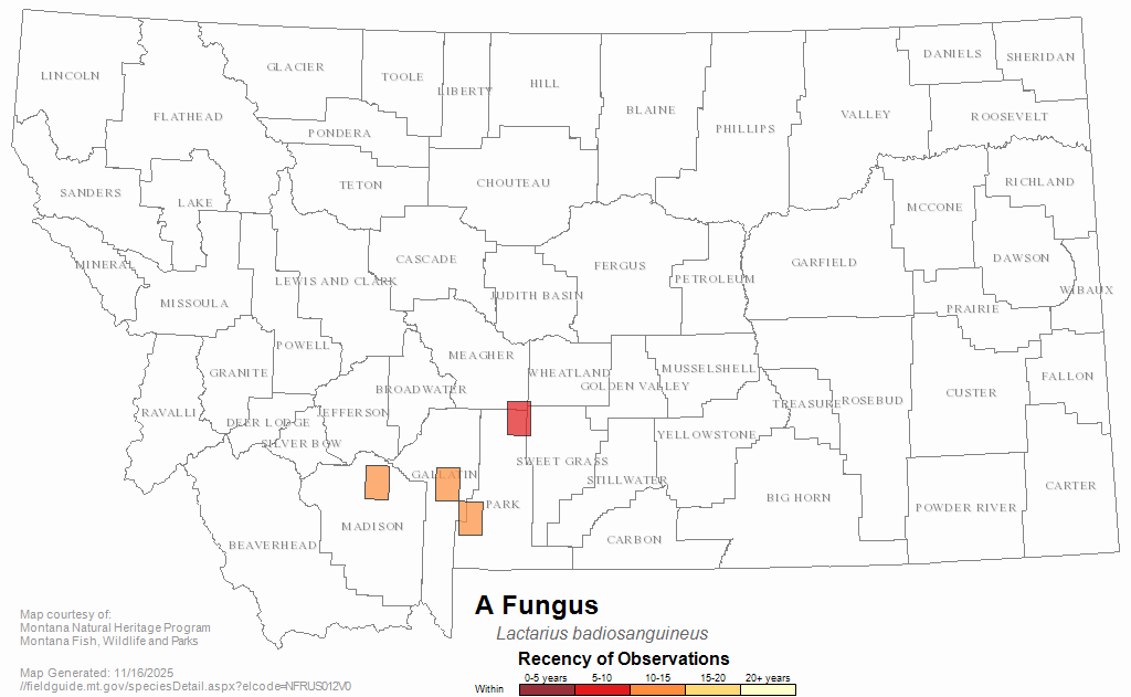 A Fungus — Lactarius badiosanguineus.  Montana Field Guide.  .  Retrieved on , from