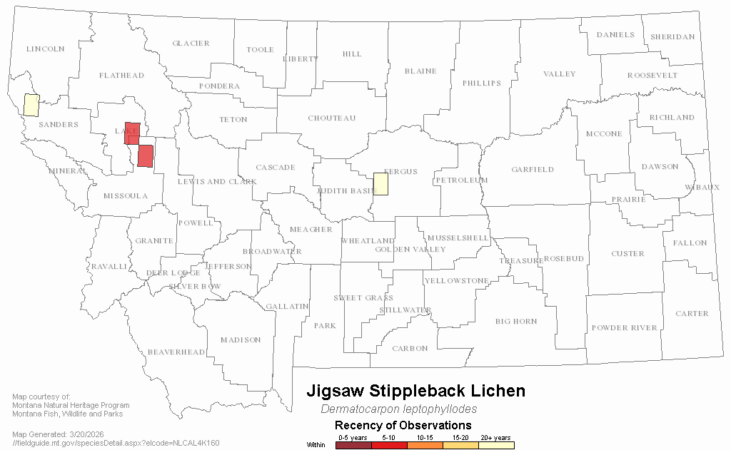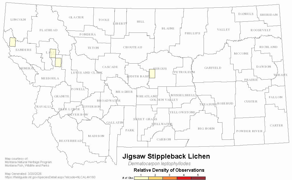 Jigsaw Stippleback Lichen — Dermatocarpon leptophyllodes.  Montana Field Guide.  .  Retrieved on , from