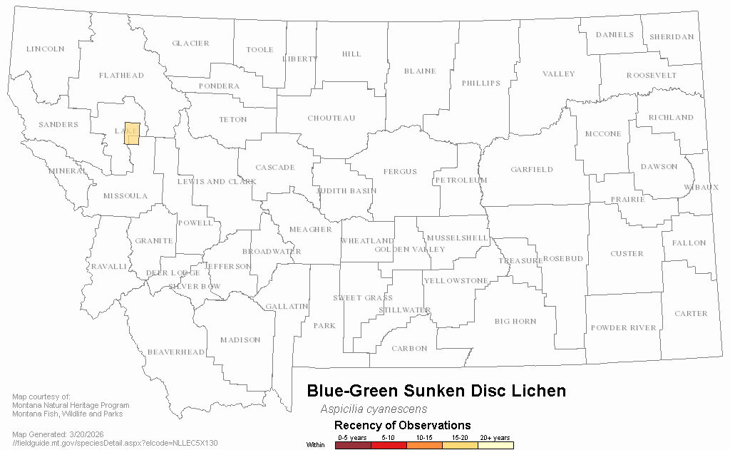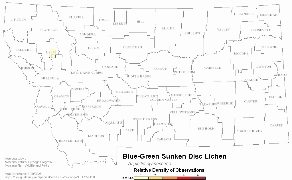 Blue-Green Sunken Disc Lichen — Aspicilia cyanescens.  Montana Field Guide.  .  Retrieved on , from