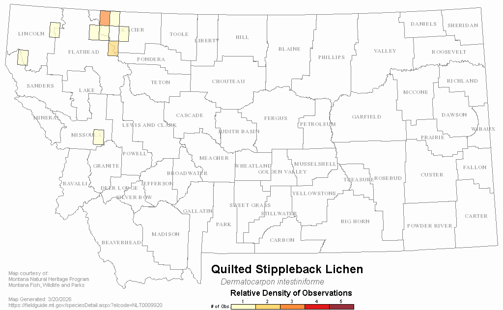 Quilted Stippleback Lichen — Dermatocarpon intestiniforme.  Montana Field Guide.  .  Retrieved on , from