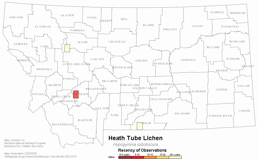 Heath Tube Lichen — Hypogymnia subobscura.  Montana Field Guide.  .  Retrieved on , from