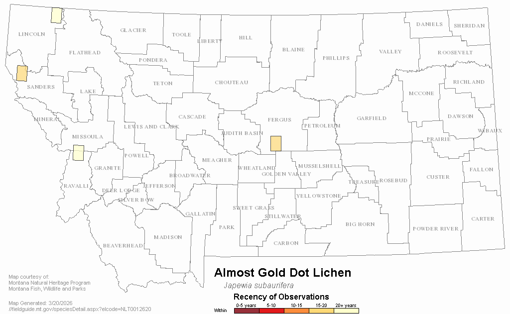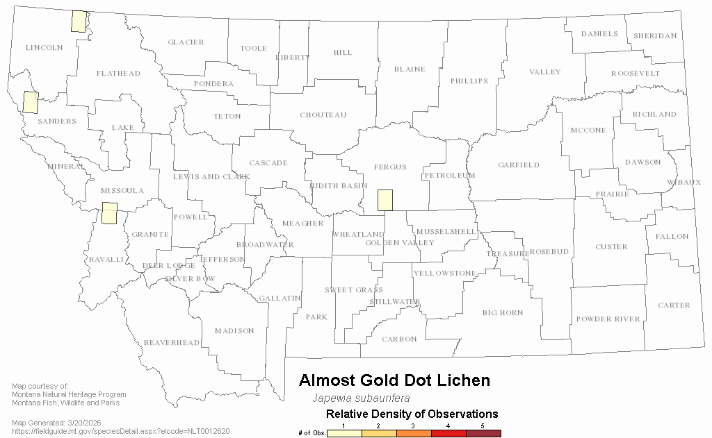 Almost Gold Dot Lichen — Japewia subaurifera.  Montana Field Guide.  .  Retrieved on , from
