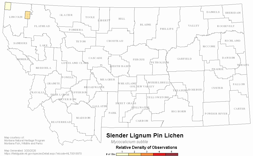 Slender Lignum Pin Lichen — Mycocalicium subtile.  Montana Field Guide.  .  Retrieved on , from