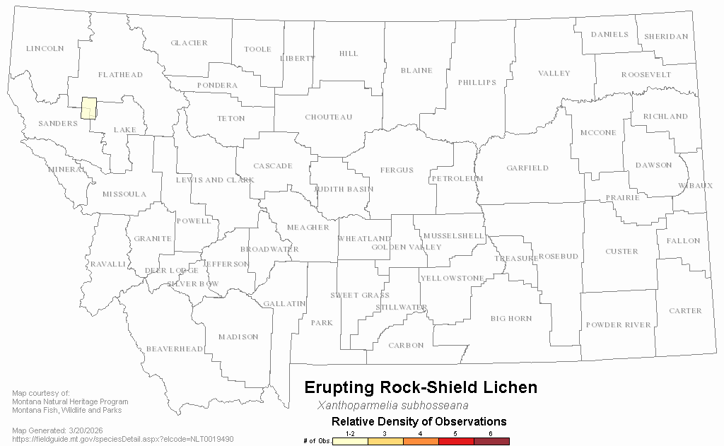 Erupting Rock-Shield Lichen — Xanthoparmelia subhosseana.  Montana Field Guide.  .  Retrieved on , from