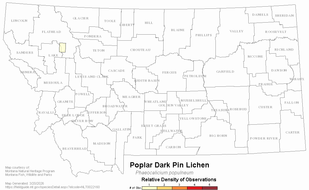 Poplar Dark Pin Lichen — Phaeocalicium populneum.  Montana Field Guide.  .  Retrieved on , from
