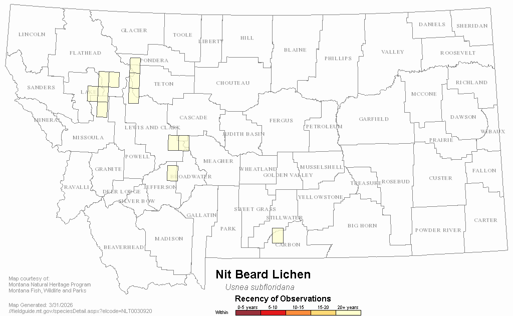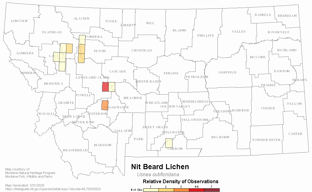 Nit Beard Lichen — Usnea subfloridana.  Montana Field Guide.  .  Retrieved on , from