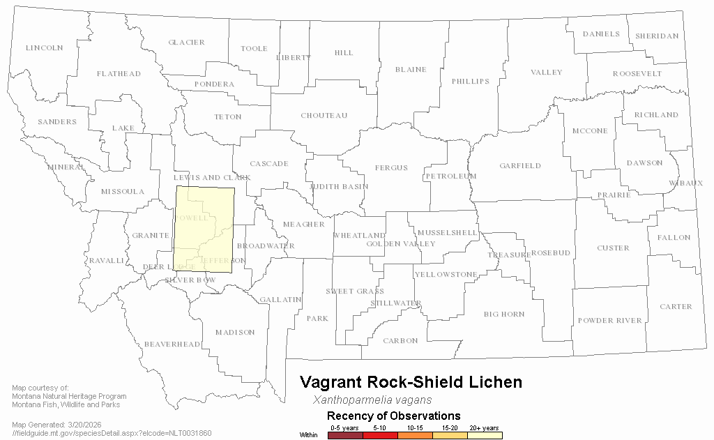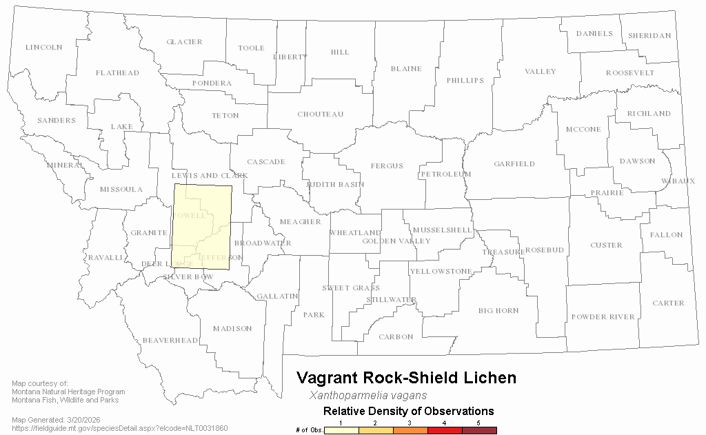 Vagrant Rock-Shield Lichen — Xanthoparmelia vagans.  Montana Field Guide.  .  Retrieved on , from