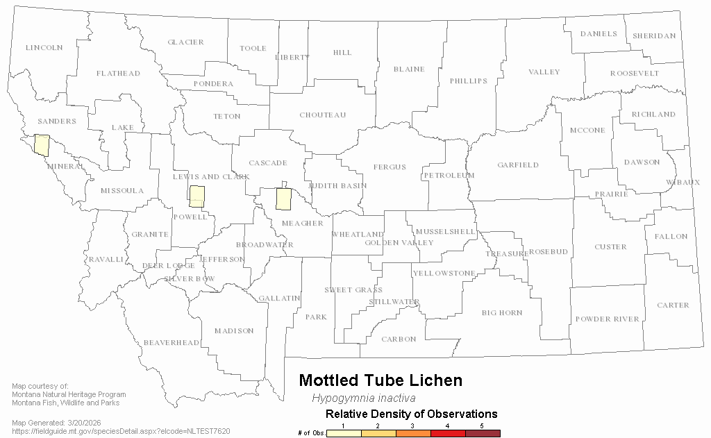 Mottled Tube Lichen — Hypogymnia inactiva.  Montana Field Guide.  .  Retrieved on , from