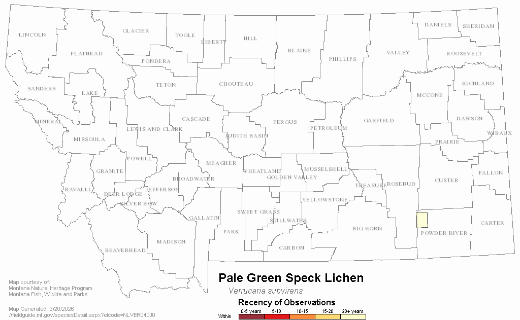 Pale Green Speck Lichen — Verrucaria subvirens.  Montana Field Guide.  .  Retrieved on , from