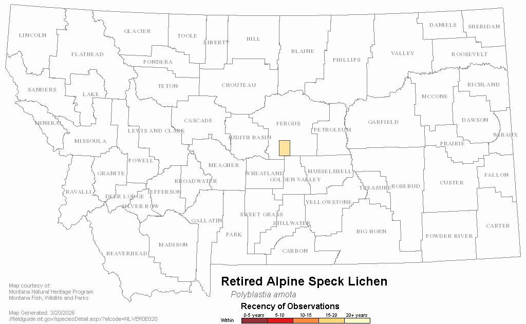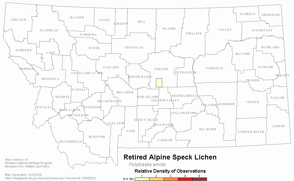 Retired Alpine Speck Lichen — Polyblastia amota.  Montana Field Guide.  .  Retrieved on , from